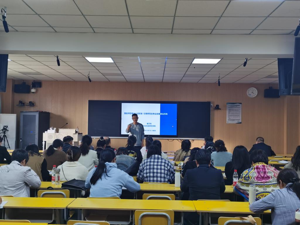 2023年10月19日下午,sunbet申搏官方网站在X401教室举办了师范专业认证相关内容培训会。培训会邀请崔万秋教授作“落实师范专业认证标准,引领师范生专业发展政治方向”专题报告,sunbet申搏官方网站全体教师参加了培训会。