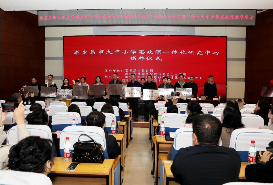 本次活动共分两个阶段,第一阶段举行秦皇岛市大中小学思政课一体化研究中心揭牌仪式,第二阶段举办“习近平法治思想”融入大中小学思政课教学展示活动。
